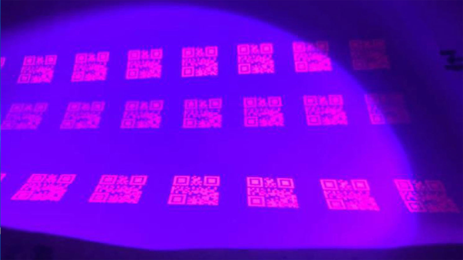 UV噴碼機設備配合隱形墨水,隱形墨水所噴印出來的圖案或文字,只有在紫外光照射下,才能呈現出清晰光亮的圖案,檢測方便,防偽效果好。隱形防偽碼(可以是圖片、二維碼、QR碼等),識讀設備和查詢平臺三者協同作用,以高效性和實用性防偽,形成有效的防偽和物流管控系統。