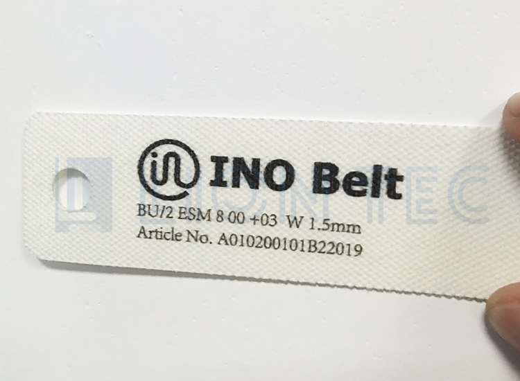 吊裝帶標簽uv噴碼機打樣效果,色澤飽滿,高清晰,高附著