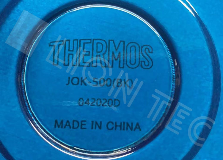 UV噴碼機在不銹鋼保溫杯杯底噴印效果