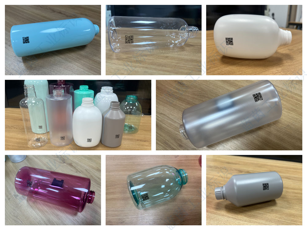 客戶(hù)寄來(lái)的化妝品塑料瓶,需要在瓶身上用UV噴碼機(jī)噴印二維碼,下面是打樣效果圖