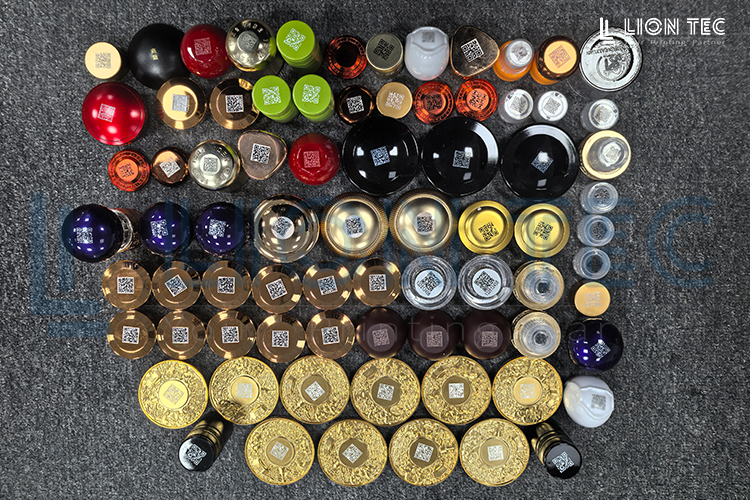 此款酒瓶蓋為白酒瓶蓋,材質(zhì)為塑料外表面鍍鋅,需要在外蓋上噴印可變二維碼。藍(lán)茵UV噴碼機(jī)噴印的效果,無(wú)需等離子處理就能達(dá)到高附著的效果,客戶(hù)很滿(mǎn)意。
