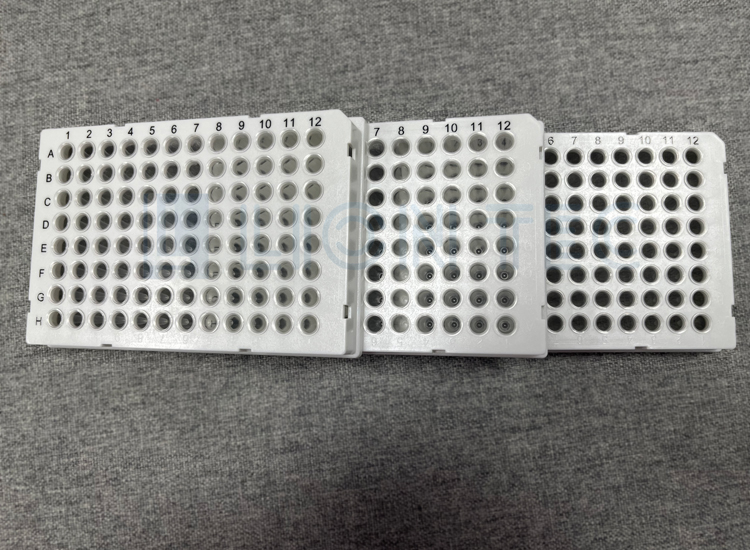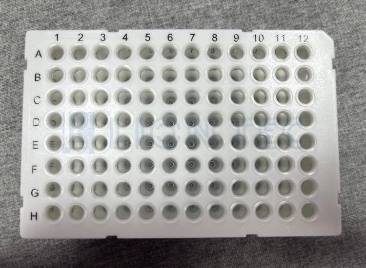 生物制藥公司客戶的聚丙烯(PP)材料樣品孔板PCR板通過藍茵UV噴碼機數字打樣的效果